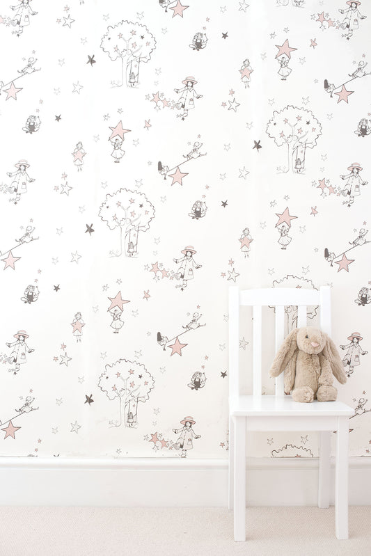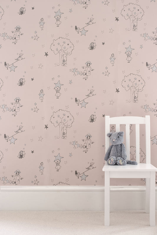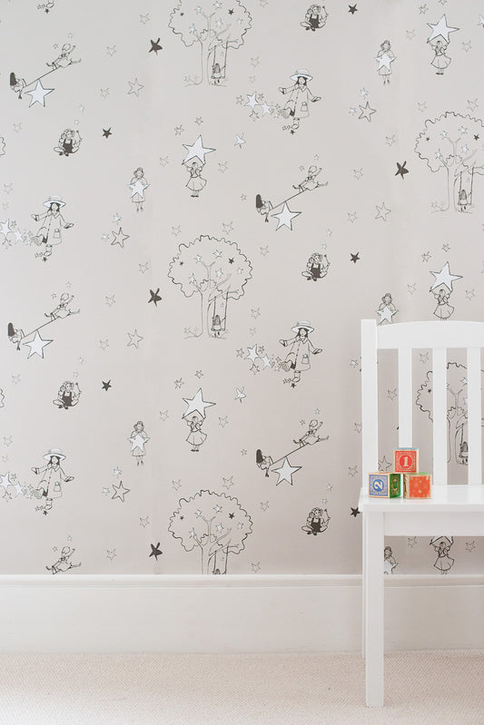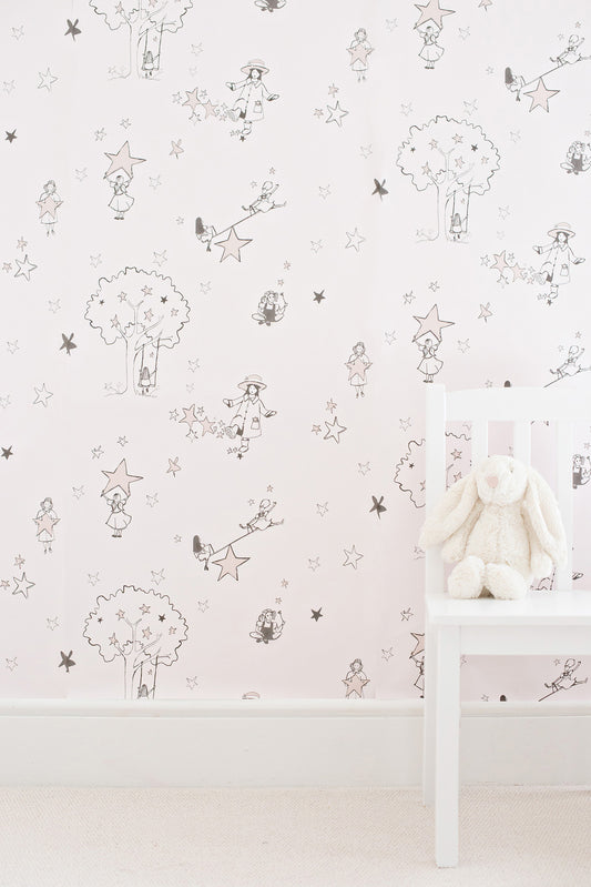 Twinkle twinkle with catch a star. Your little ones will look with wonder at the array of stars glittering in this beautiful design. Featuring little girls playing and frolicking amongst the stars.
