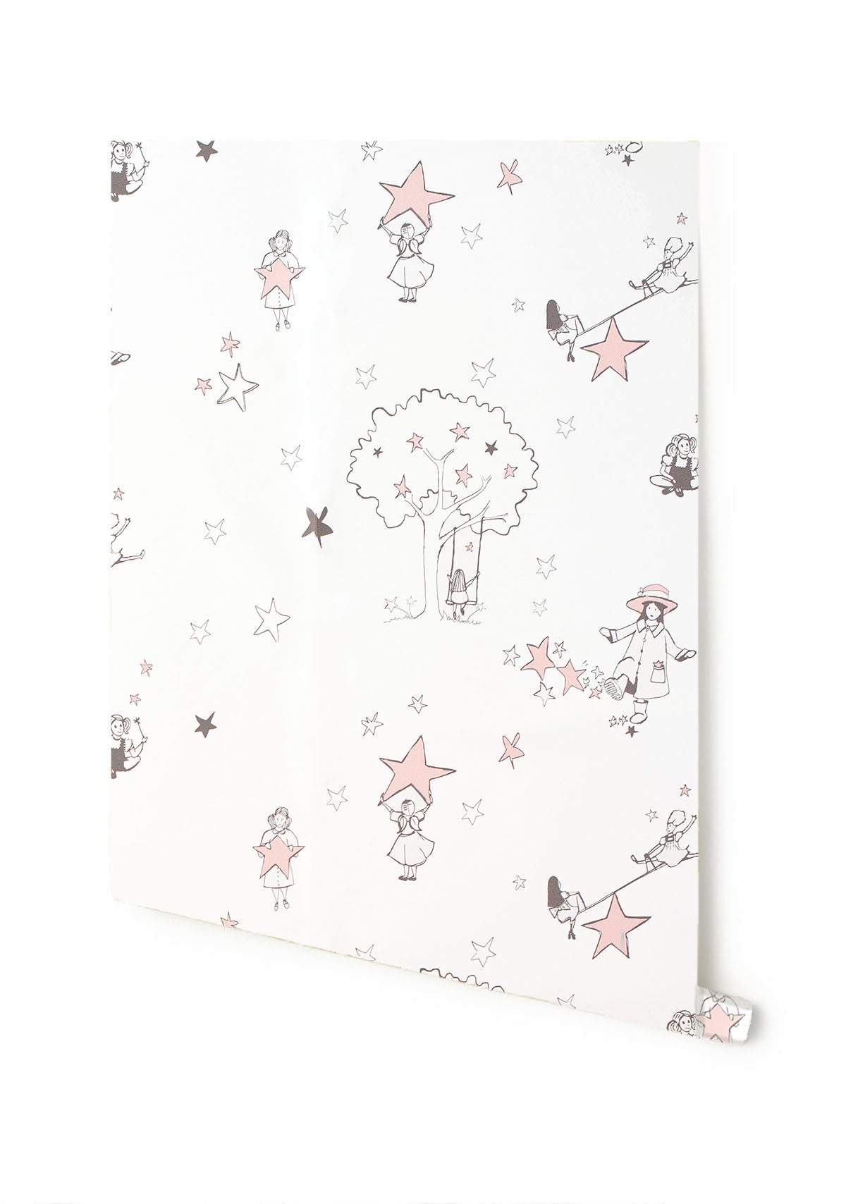 Twinkle twinkle with catch a star. Your little ones will look with wonder at the array of stars glittering in this beautiful design. Featuring little girls playing and frolicking amongst the stars.