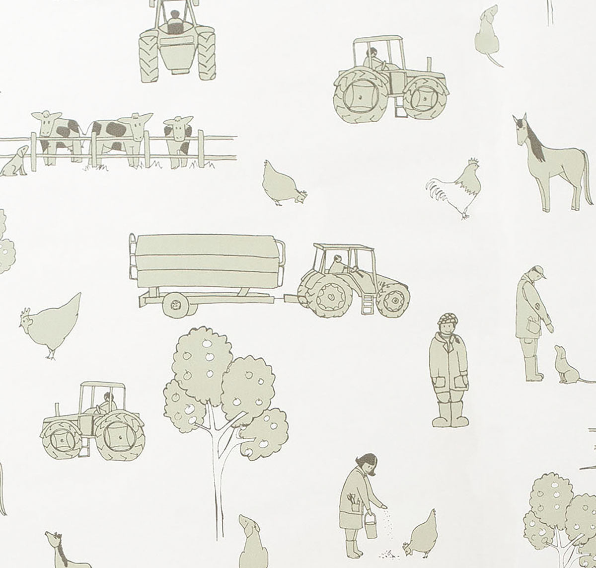 Life on the farm has never looked so good. This rural inspired paper brings country living into their rooms with farmyard favourites such as cows and chickens, tractors and of course the farmer and his wife, all designed with a splash of humour.