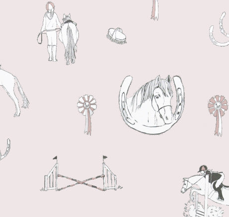 An equestrian themed design available in 5 sumptuous wallpaper and fabric colour ways. Horse Tales is every horse and pony lover's dream. Create your own story tales within this stylish paper featuring pretty ponies, rosettes and jumps. The pattern has been carefully designed so that little equestrians can identify with the images and feel that special relationship between pony and rider. This beautiful wallpaper is perfect for bedrooms and playrooms and even cloakrooms and boot rooms!