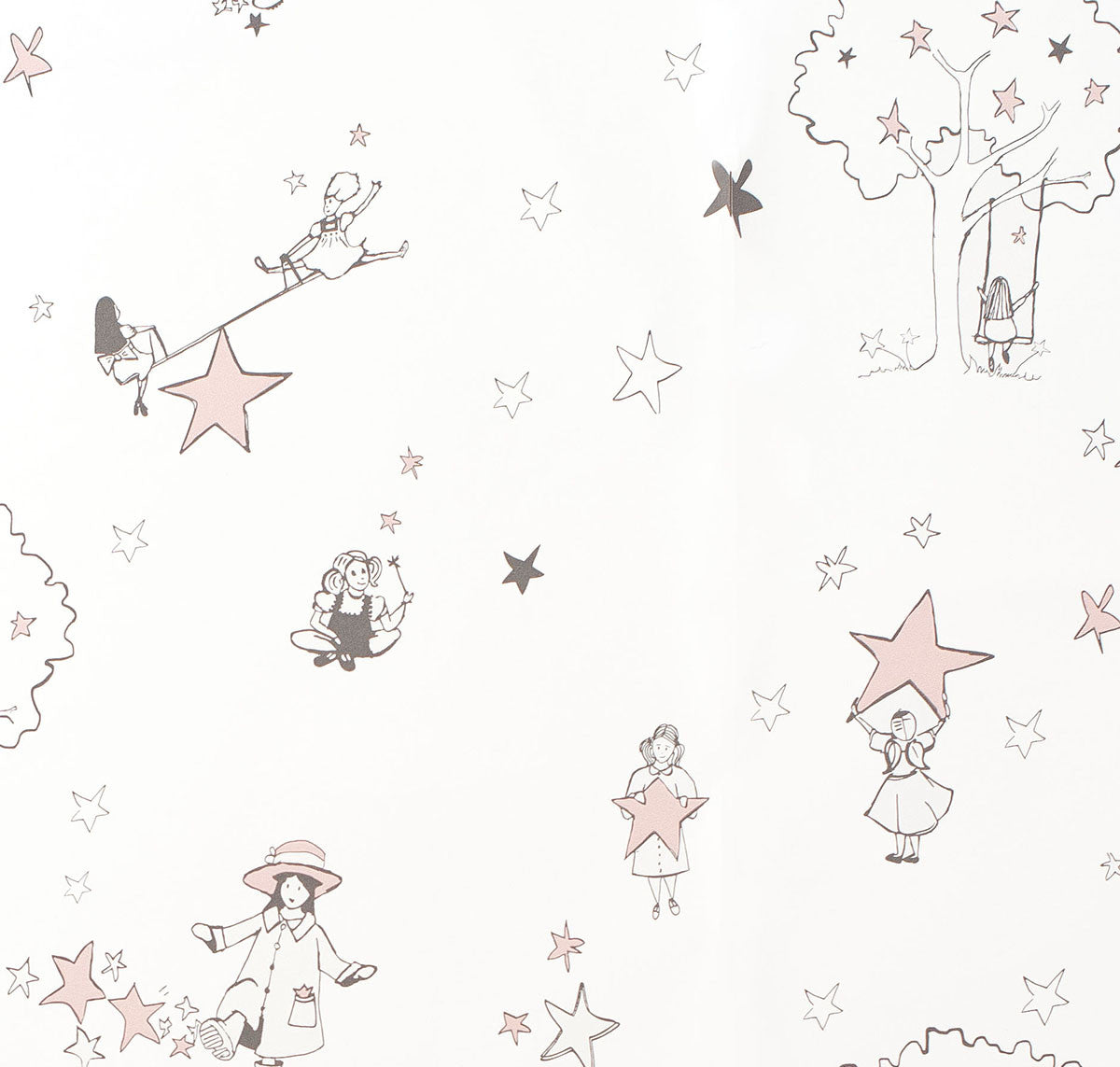 Twinkle twinkle with catch a star. Your little ones will look with wonder at the array of stars glittering in this beautiful design. Featuring little girls playing and frolicking amongst the stars.