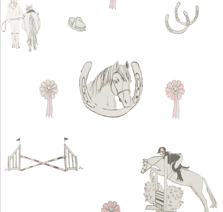 An equestrian themed design available in 5 sumptuous wallpaper and fabric colour ways. Horse Tales is every horse and pony lover's dream. Create your own story tales within this stylish paper featuring pretty ponies, rosettes and jumps. The pattern has been carefully designed so that little equestrians can identify with the images and feel that special relationship between pony and rider. This beautiful wallpaper is perfect for bedrooms and playrooms and even cloakrooms and boot rooms!